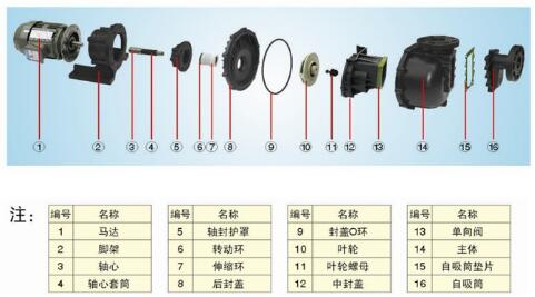 三、星欧JKB自吸式耐酸碱泵(大头泵)分解图